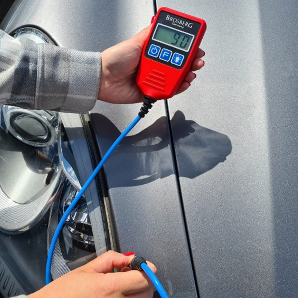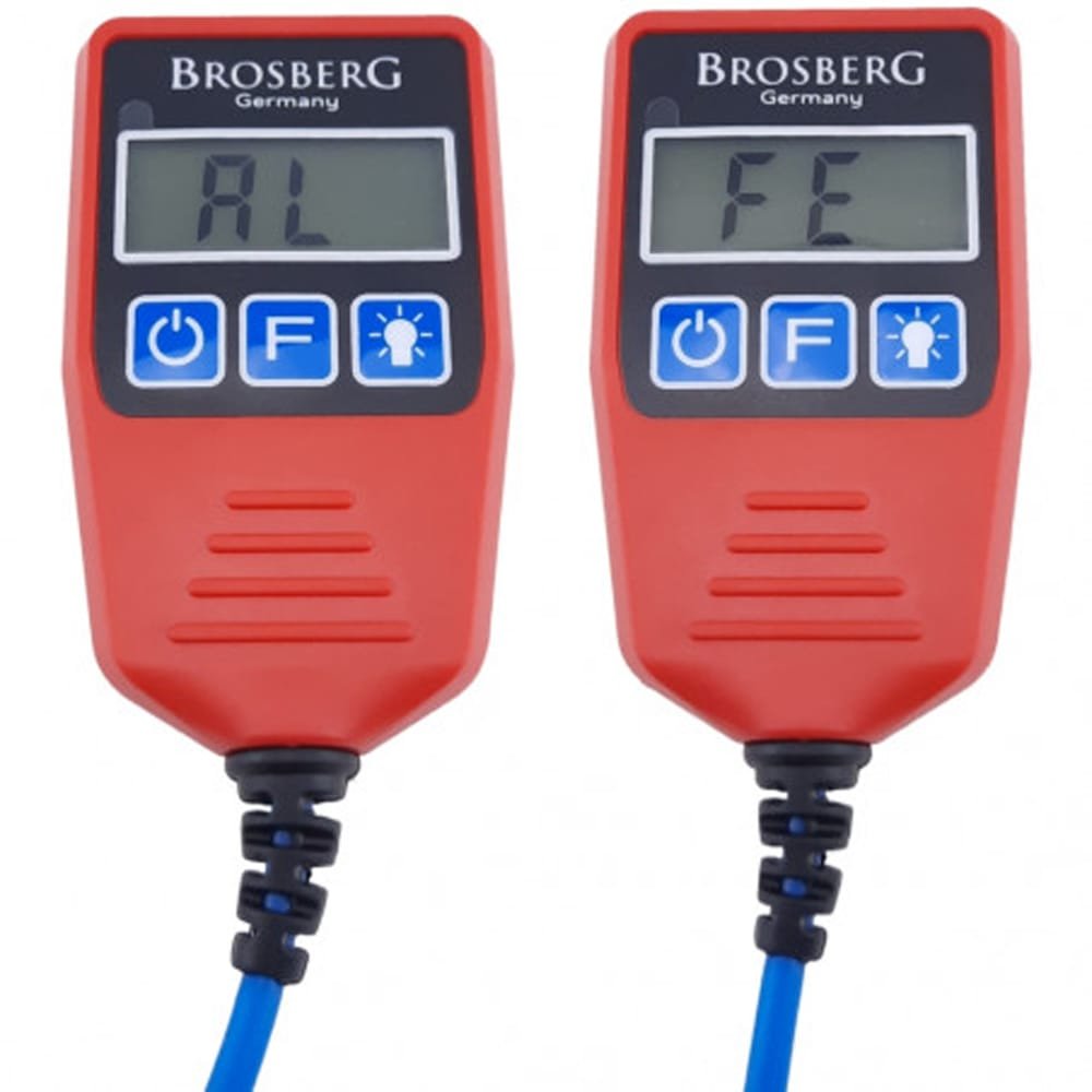 Brosberg P5 PLUS dažų storio matuoklis – aukštos kokybės įrankis, tinkantį ir entuziastams, ir profesionalams. Lengvai nustatykite, kurios dalys yra dažytos, išmatuokite dažų storį ir tiksliai nustatykite remontuotas vietas. Šis matuoklis leidžia suprasti, ar transporto priemonei buvo atliktas kėbulo remontas, ar ji buvo perdažyta. Prietaiso ekrane rodomas simbolis „Al“ reiškia aliuminį, o simbolis „FE“ – metalą.